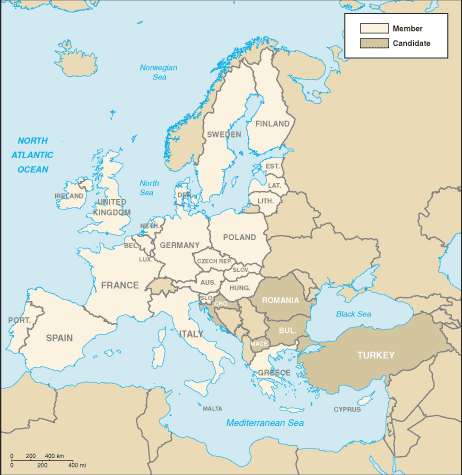The EU allows member nations free trade and commerce between each other. Also, it?s easy for citizens to travel between EU member countries. This helps businesses and tourism throughout the Union. It is often referred to by the abbreviation EU.